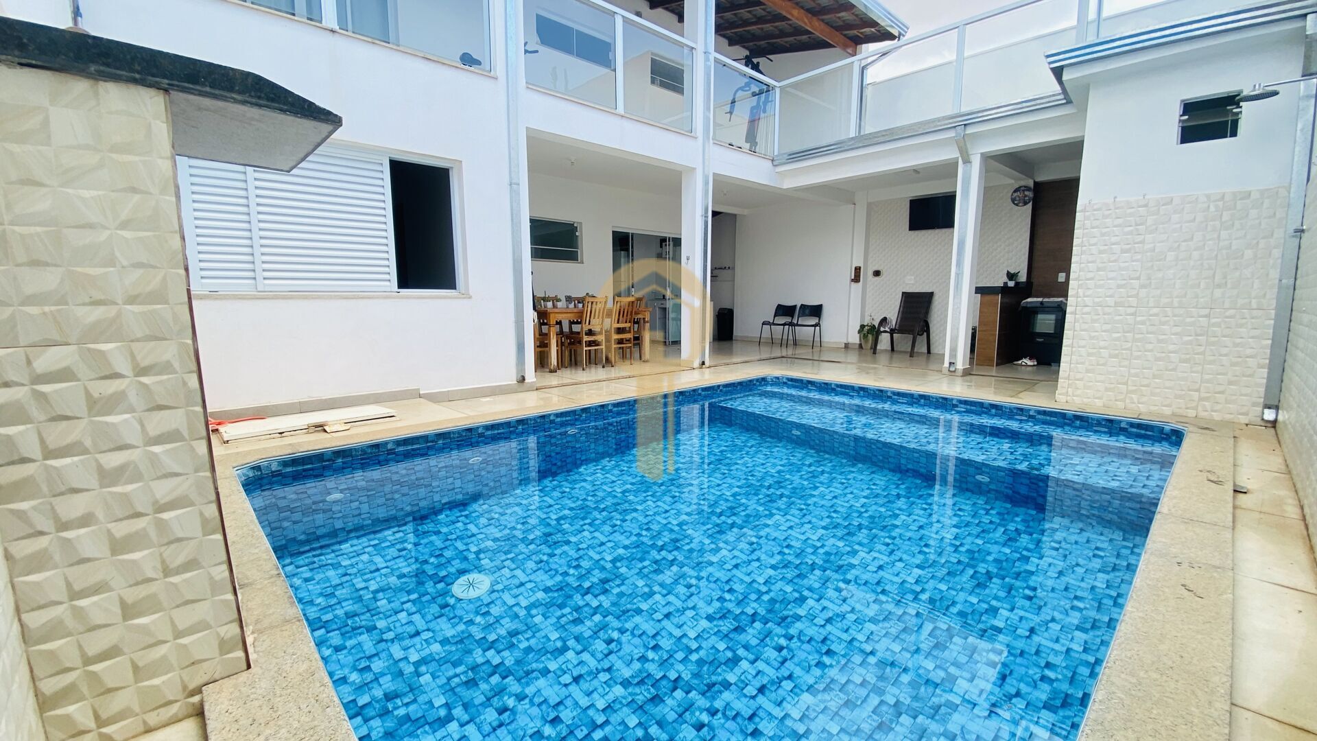 * Área de lazer com churrasqueira, lavabo, pia, piscina com cascata, hidro e aquecimento elétrico;